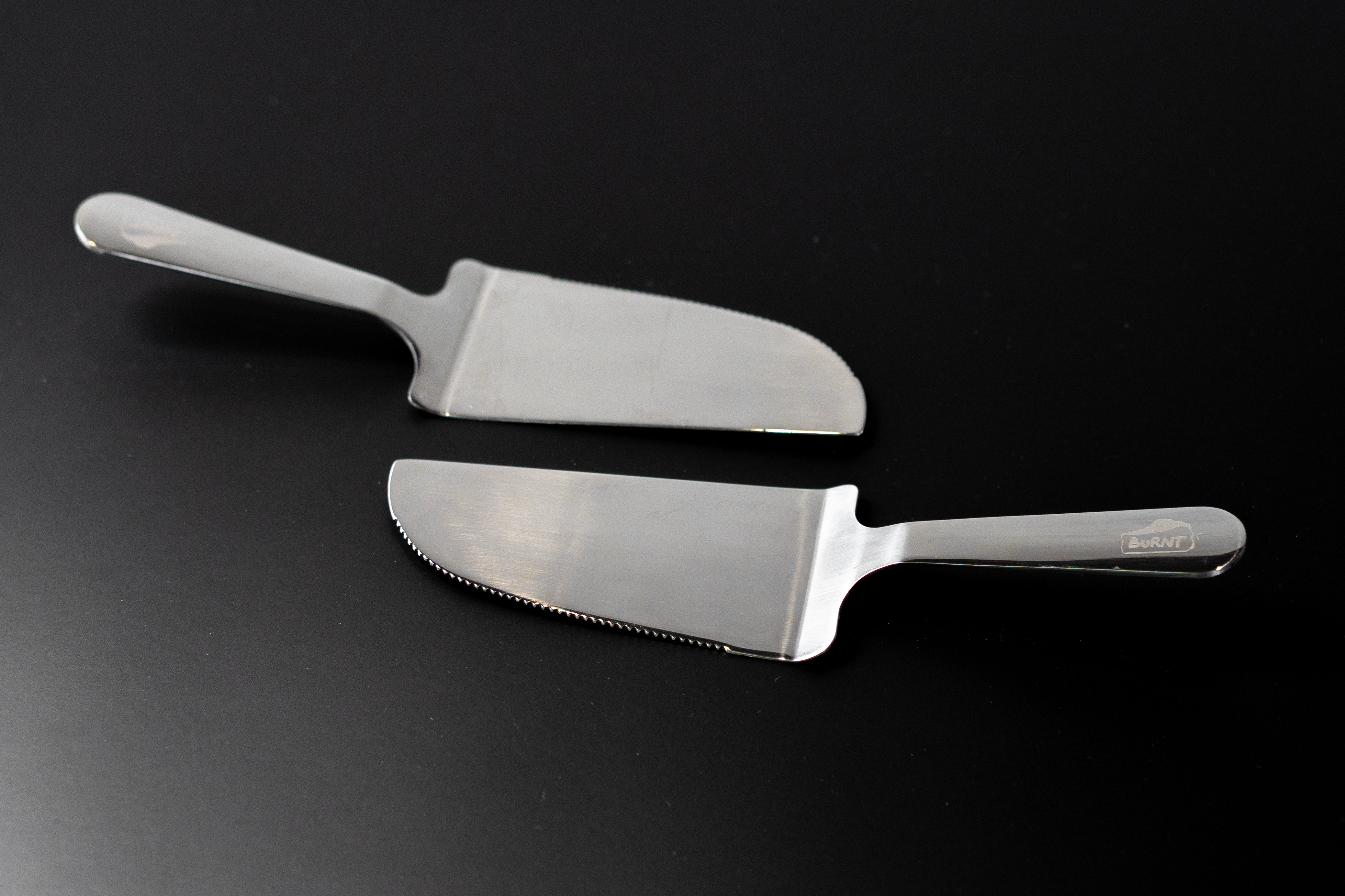 Cut the the perfect slice of cheesecake with this stainless steel cake server with Burnt logo engraving on the handle. Dishwasher safe.